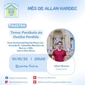 A Casa Assistencial Espírita Nosso Lar convida você para mais um encontro de estudo e reflexão durante o Mês de Allan Kardec.