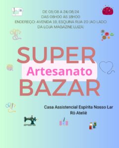 Você é apaixonado por artesanato? Então não pode perder o nosso Super Bazar de Artesanato, que acontecerá do dia 05/08 até 24/08, das 08h às 18h! 🎉